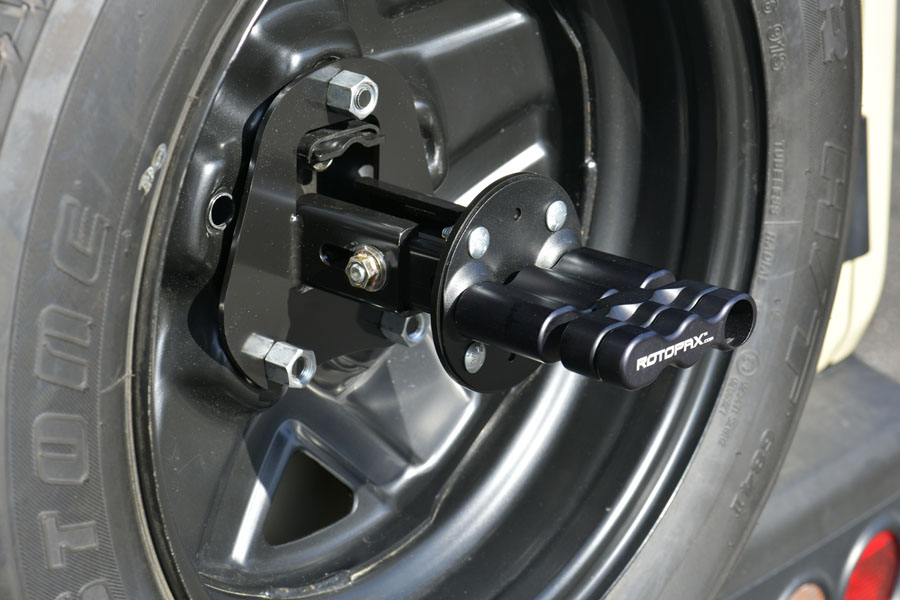 ROTOPAXパックマウントを、スズキ ジムニー&ジムニーシエラの純正背面タイヤ&ホイールに取り付けるためのブラケットセットです。
